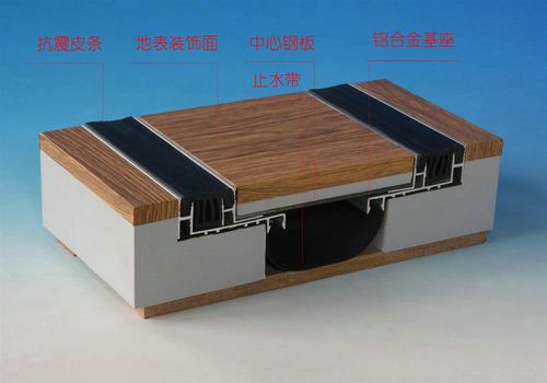 抗震型地坪变形缝——增加盖板厚度,提高承载能力,采用滑杆确保变形缝装置变位时仍能保持中心及原有位置。
